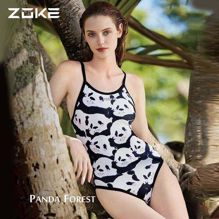 洲克熊猫泳衣女款竞速训练显瘦游泳衣zoke专业竞技三角泳装泳帽
