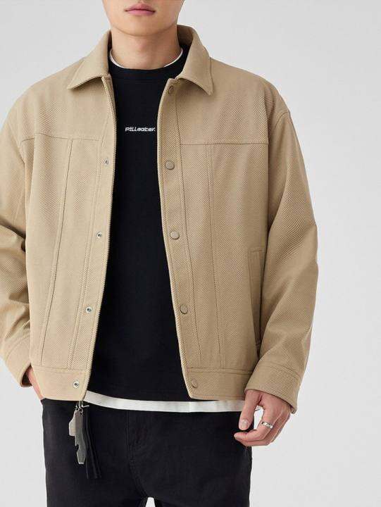墨麦客男装2025春季新款斜纹肌理翻领夹克男士结构分割休闲外套男