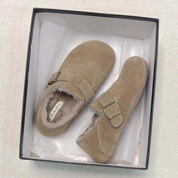 加绒勃肯鞋软底防滑内增高复古雪地靴舒适棉鞋毛毛鞋外穿孕妇女鞋