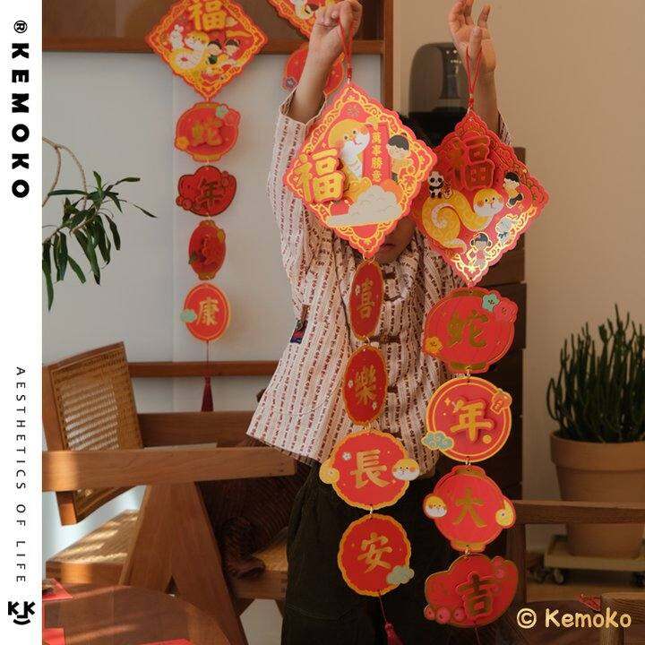 蛇年2025年原创kemoko乔迁新居装扮挂饰新年对联客厅装饰植物挂件