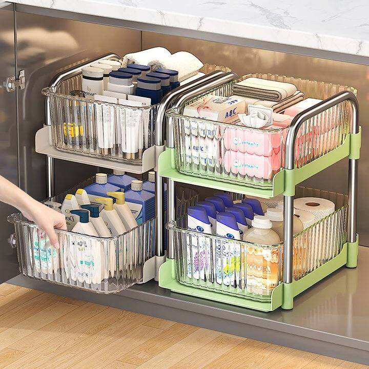 下水槽置物架浴室柜抽拉分层收纳架厕所卫生间洗手池台面整理神器