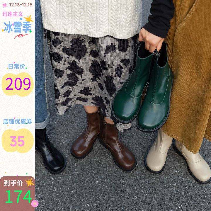 玛速主义2024新款平底马丁瘦瘦靴女冬百搭单靴英伦风短靴加绒靴子
