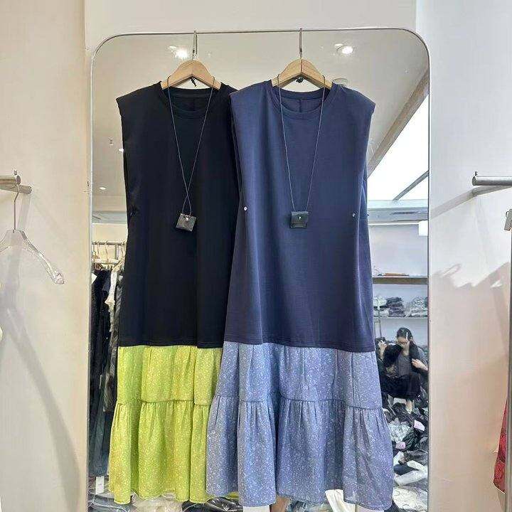雷洛奇丽8987夏新款时尚圆领拼色配腰包连衣裙女百搭显瘦背心裙女