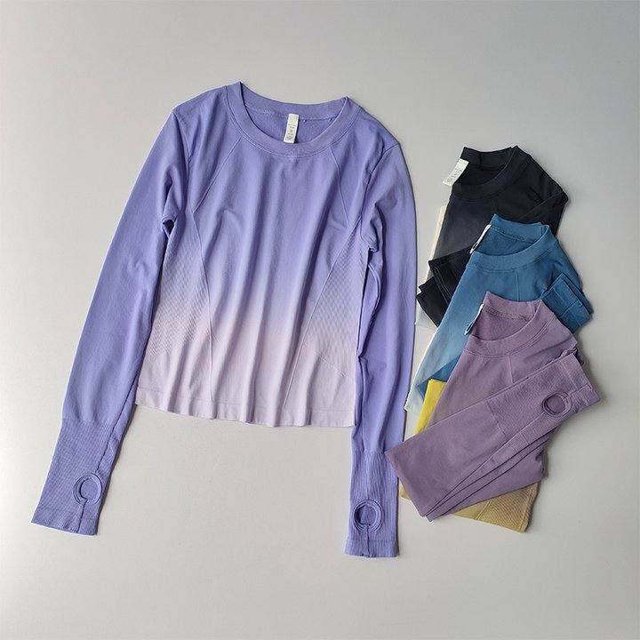 网红渐变显瘦运动T恤健身衣女紧身速干上衣瑜伽服训练修身长袖