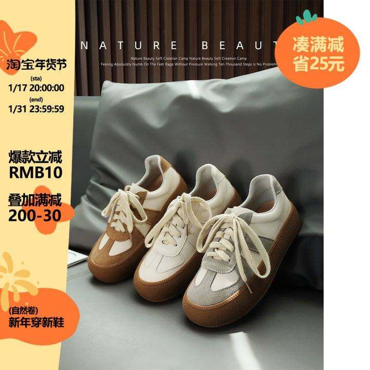 自然卷厚底板鞋2023年秋季新品拼色学生百搭休闲运动鞋复古德训鞋