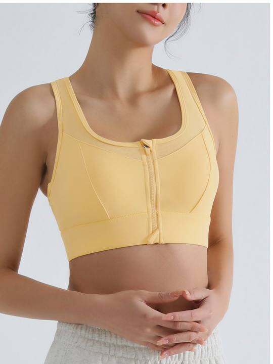 前拉链一体式固定杯运动文胸高强度防震速干健身瑜伽女背心式内衣