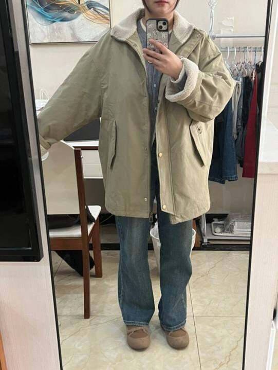 高端欧货冬季新款宽松休闲中长款立领羊羔毛内胆保暖派克服外套女