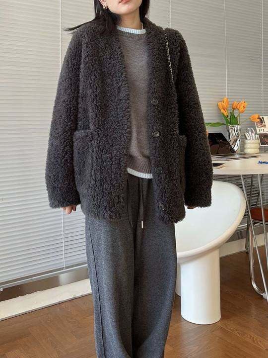 100%真羊毛皮草宽松外套女开衫大廓形羊羔毛颗粒毛休闲加厚羊剪绒