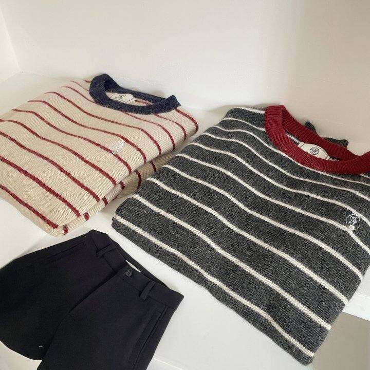 【大胡子和大脸家】复古撞色条纹羊毛衫宽松刺绣显瘦百搭浣熊毛衣