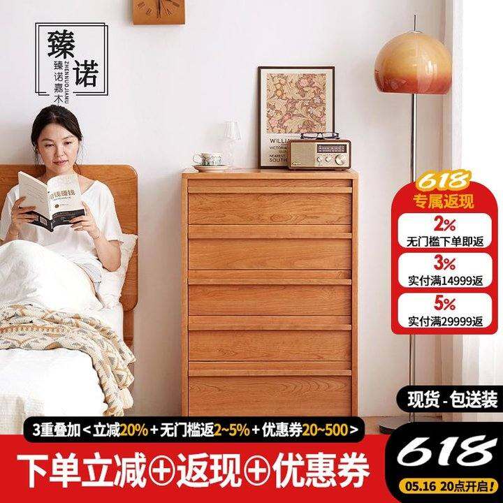 全实木五斗柜樱桃木原木简约小户型北欧落地收纳储物柜日式靠墙柜
