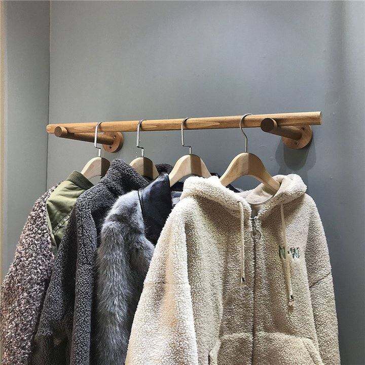 服装店上墙壁挂展示架木棍衣杆侧挂女装陈列墙上置衣架童装店货架