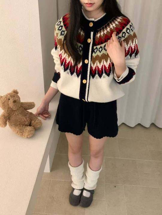 lilian~覆古北欧风费尔岛慵懒软糯秋冬短款针织开衫毛衣528539