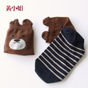 【黄小姐私房打底团No.6】 可爱小熊条纹袜子加厚款纯棉棉袜