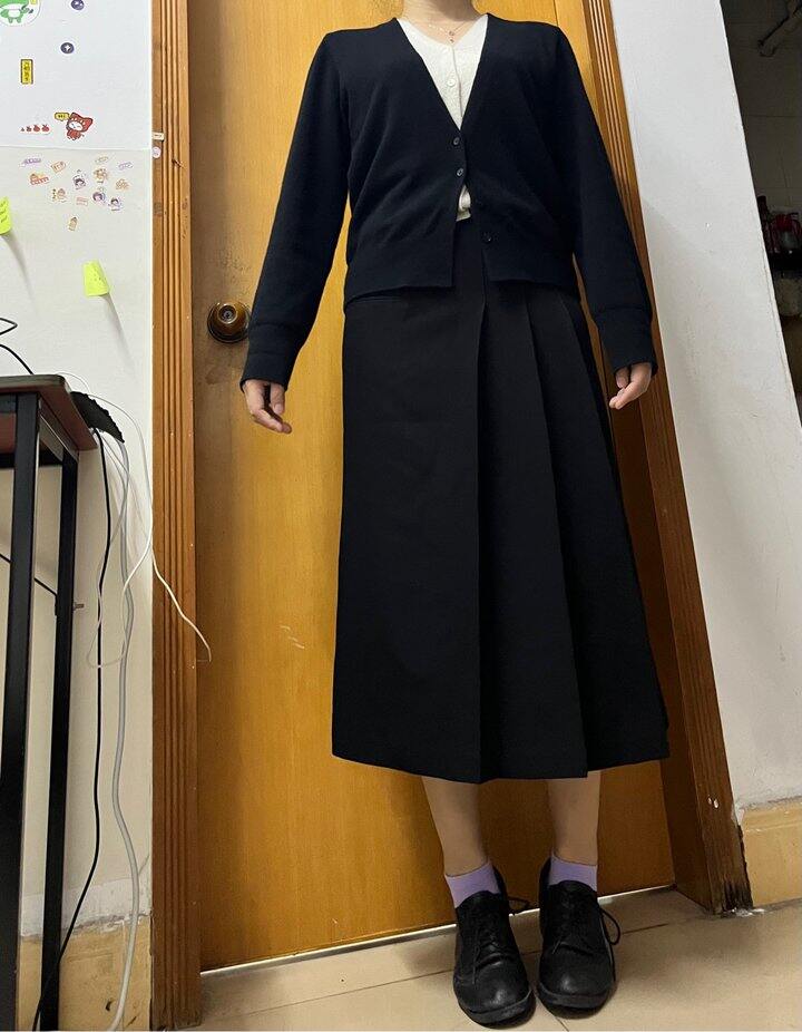 裙子不是那种特别A的摆 所以不会很显胯宽 西装面料 可以看的出很厚实有质感 秋天穿可以光腿 冬天就配条打底裤可以啦 裙子很有设计感 有一些百褶 总之也很百搭啦 姐妹们可以冲啦