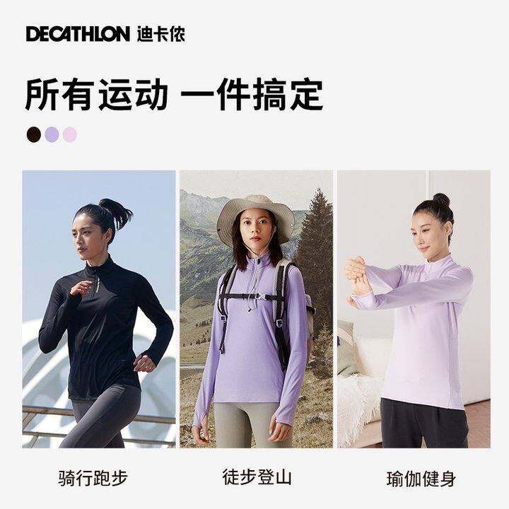 迪卡侬加绒速干衣女秋冬保暖跑步长袖t恤运动上衣户外健身服TAWW