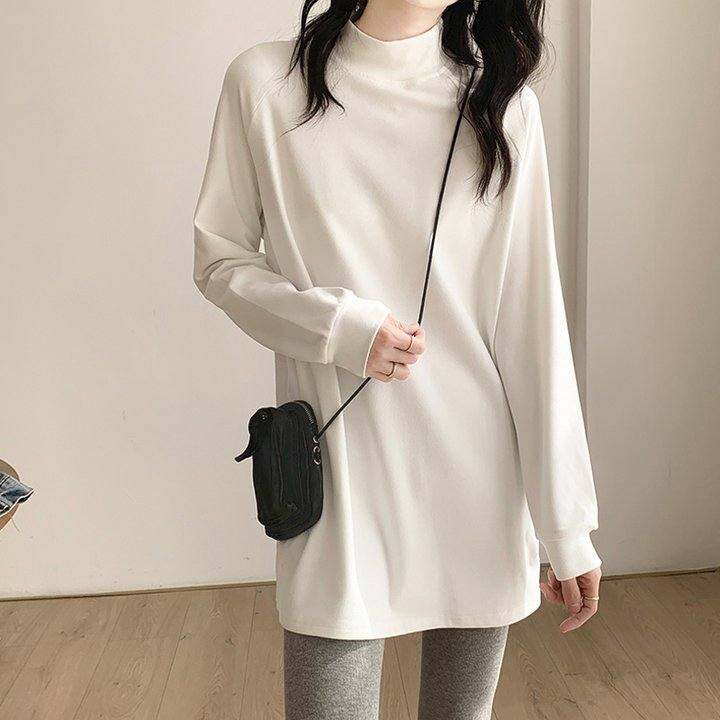 秋冬中长款遮屁股高领纯棉德绒打底衫女长袖白色卫衣内搭春装上衣