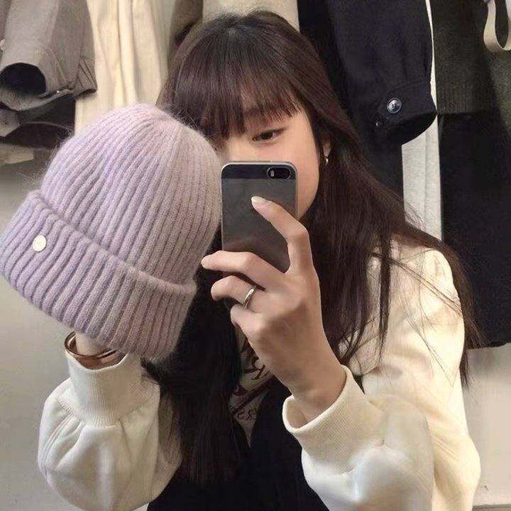【南小西】自制小银扣兔毛毛线帽百搭宽边冬季保暖加厚针织帽子女