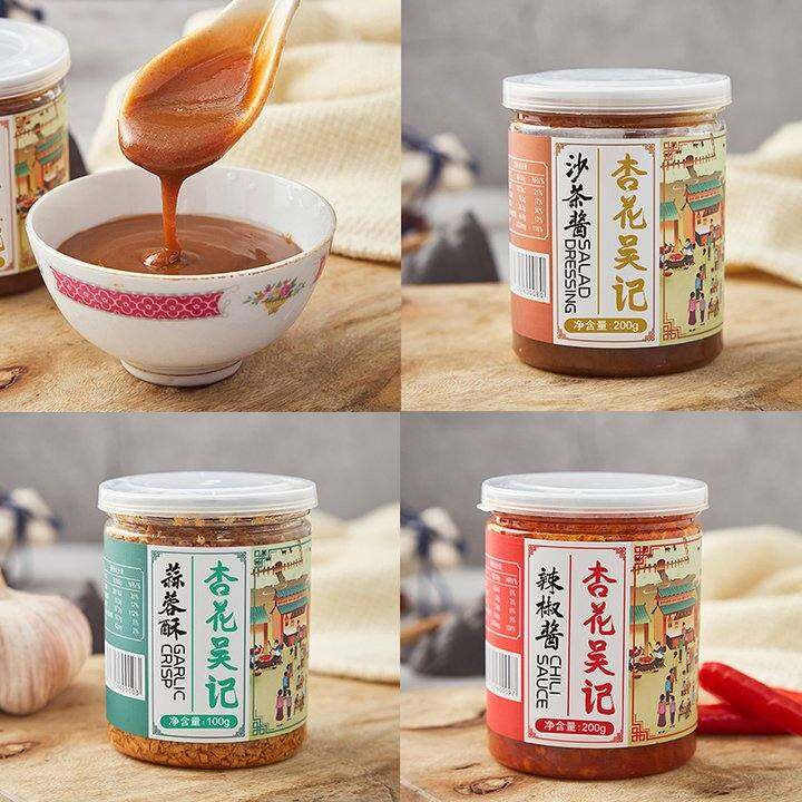 杏花吴记沙茶酱+辣酱+蒜蓉酥3件 正宗潮汕牛肉火锅调味料秘制酱料