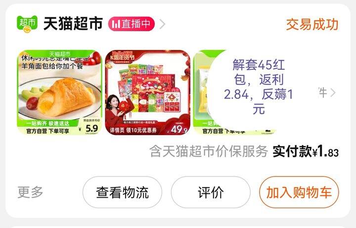 【香菇来了直播间】花费23.96+6.3+11.39+7.04+4.29+1.38+60.5+3.97+20.09+17.12+28.22−26−26−15−7.87−2.48−7.87−2.87−2.88−9.02−9.02+13.53-10.49+17.83-1.04鸡蛋退款-27套自由点=33元 买返红包40元(卫生巾9包日夜用+1包护垫 酱油1200g 趣多多970g 威猛先生4瓶 一次性杯子100个 脆升升21包 奥利奥礼盒两份 鸡蛋20个 橙子6斤 面包2000g)