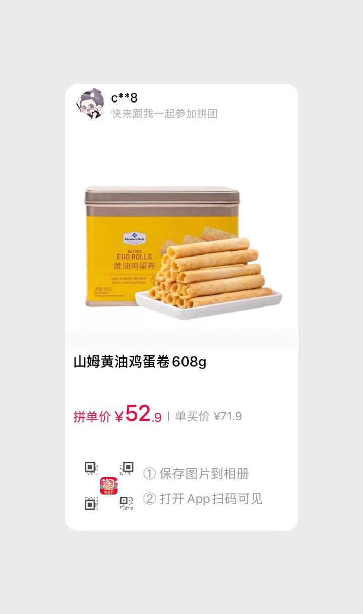 山姆蛋卷拼单,缺一人