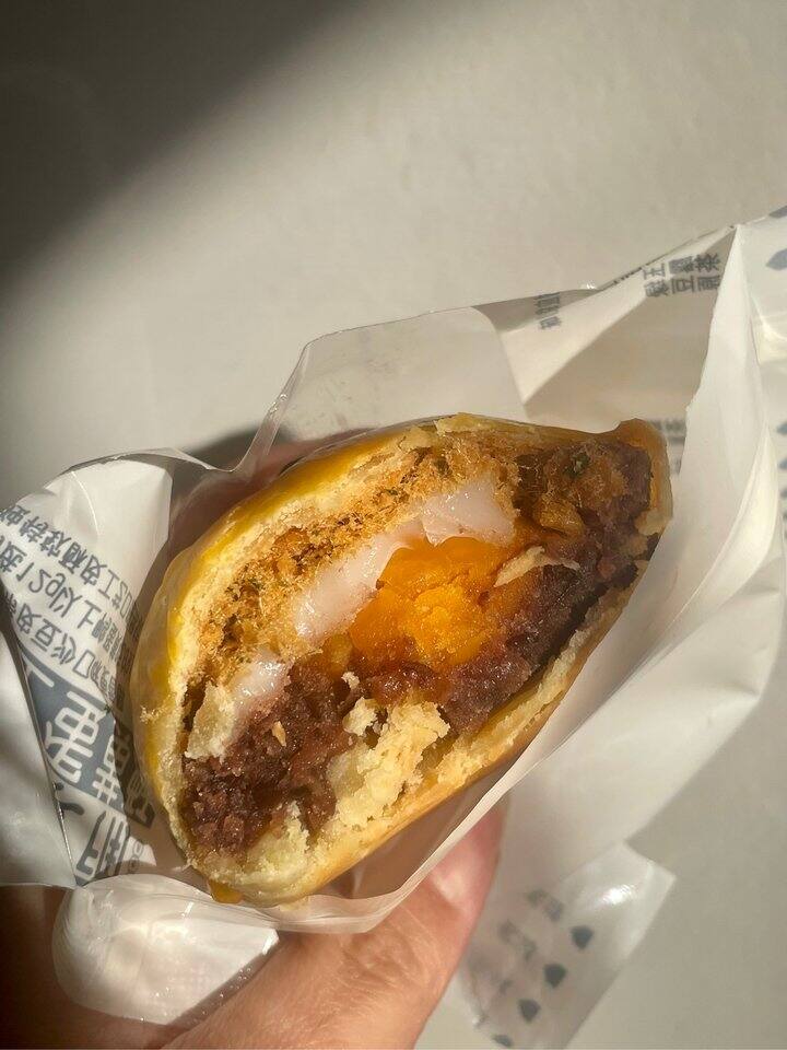 这次是回购,原食铺的蛋黄酥料很足,日期新鲜。这次赠送的酒心布朗尼好吃的,巧克力和淡淡的酒味。栗子乳酪也很好吃。