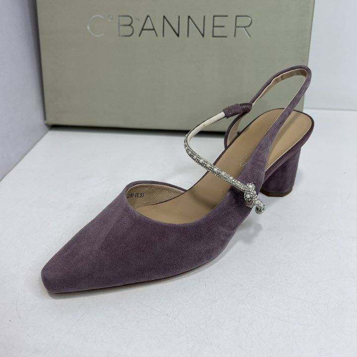 C.BANNER千百度断码撤柜真皮女鞋春夏羊反绒水钻粗跟包头时装凉鞋