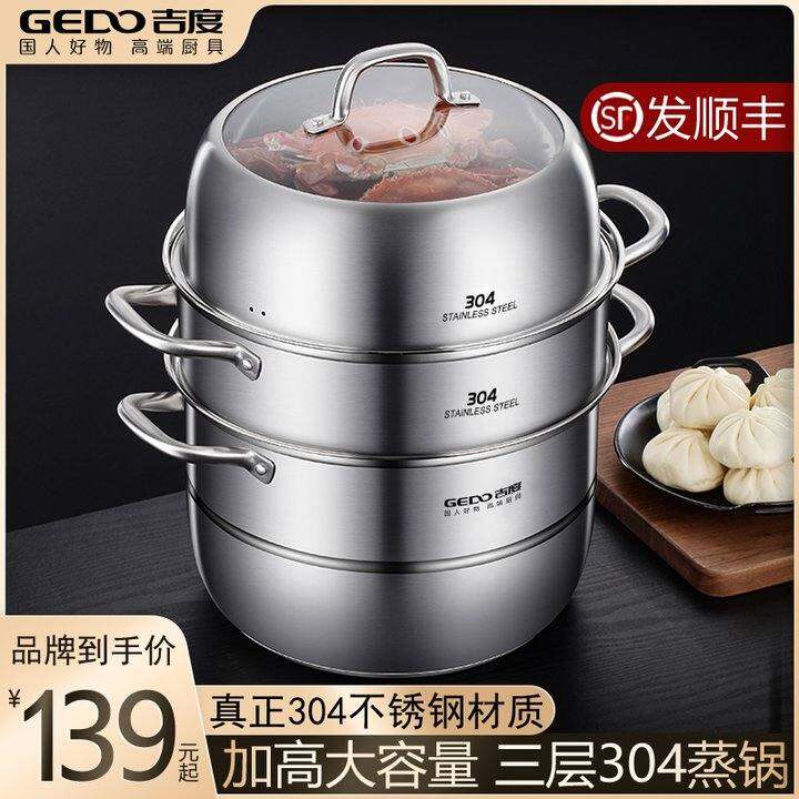 吉度蒸锅家用304不锈钢加厚多层三层蒸馒头蒸笼电磁炉煤气灶通用