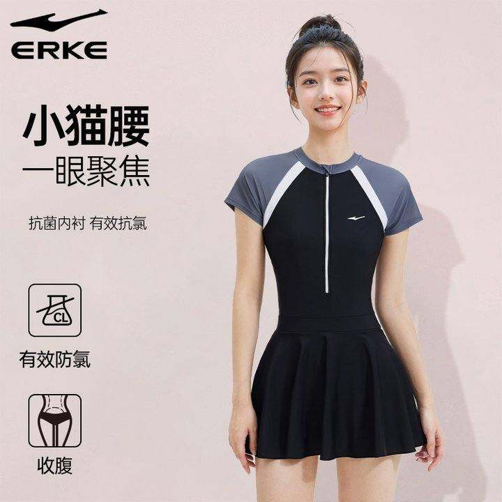 鸿星尔克游泳衣女士泡温泉2024新款保守显瘦遮肚连体高级大码泳装