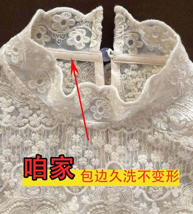 双层领2024秋季新款百搭纯棉蕾丝打底衫内搭上衣半高领长袖小衫女