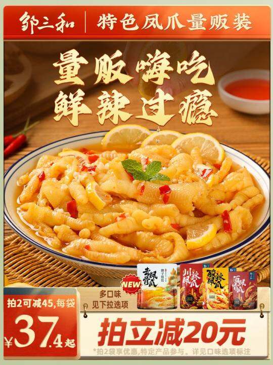 邹三和无骨鸡爪柠檬酸辣蒜香脱骨泡椒凤爪零食即食休闲小吃旗舰店