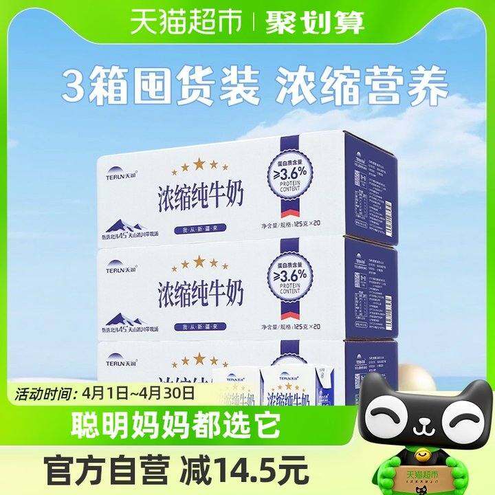 天润新疆浓缩纯牛奶儿童学生早餐奶整箱125g*60盒