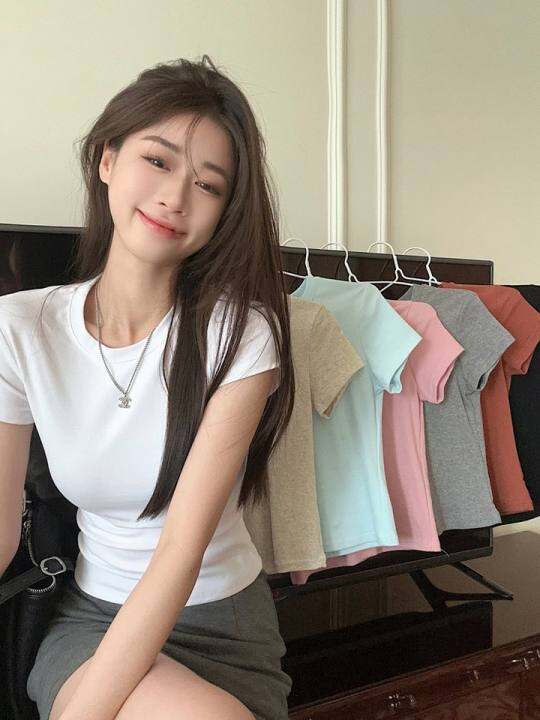 白色短袖打底衫内搭t恤女装春夏季新款修身辣妹短款正肩紧身上衣