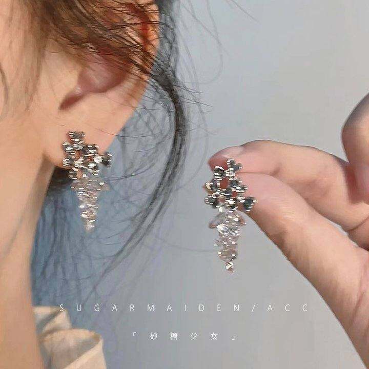 「水晶葡萄」清冷破碎感葡萄串耳钉.bling超闪花朵耳饰耳夹无耳洞