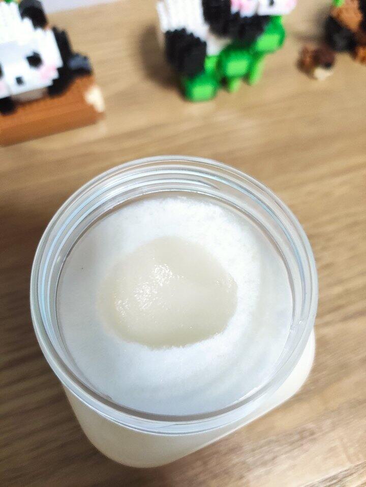 打开盖子,里面的蜂蜜有一层薄薄的结晶,呈现固体状。