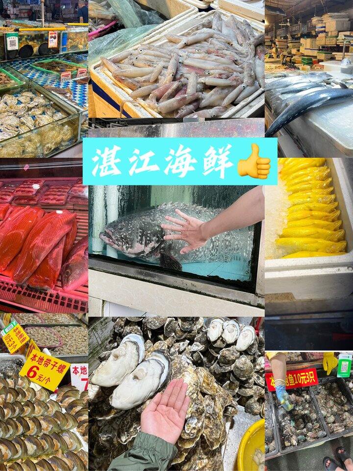 霞山水产品批发市场,海鲜很大,种类多,便宜,但是!旁边的加工和附近的加工都很贵,生蚝和鲍鱼加工3块钱一个