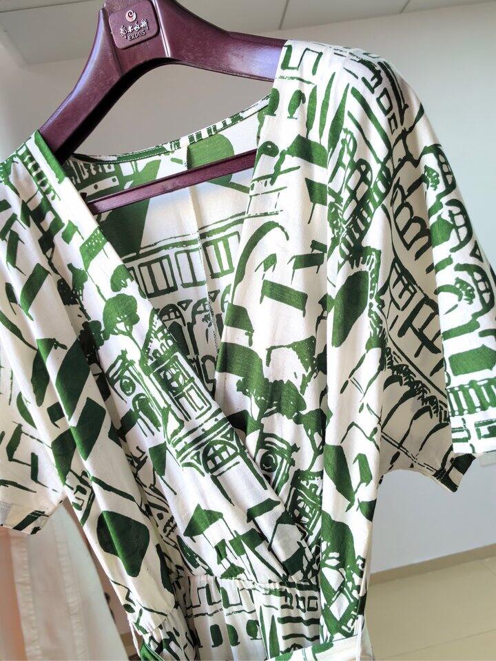 max家丝光棉连衣裙,料子非常柔软舒适,几何印花,绿色s.m.l.xl,黑色只有l.xl,,