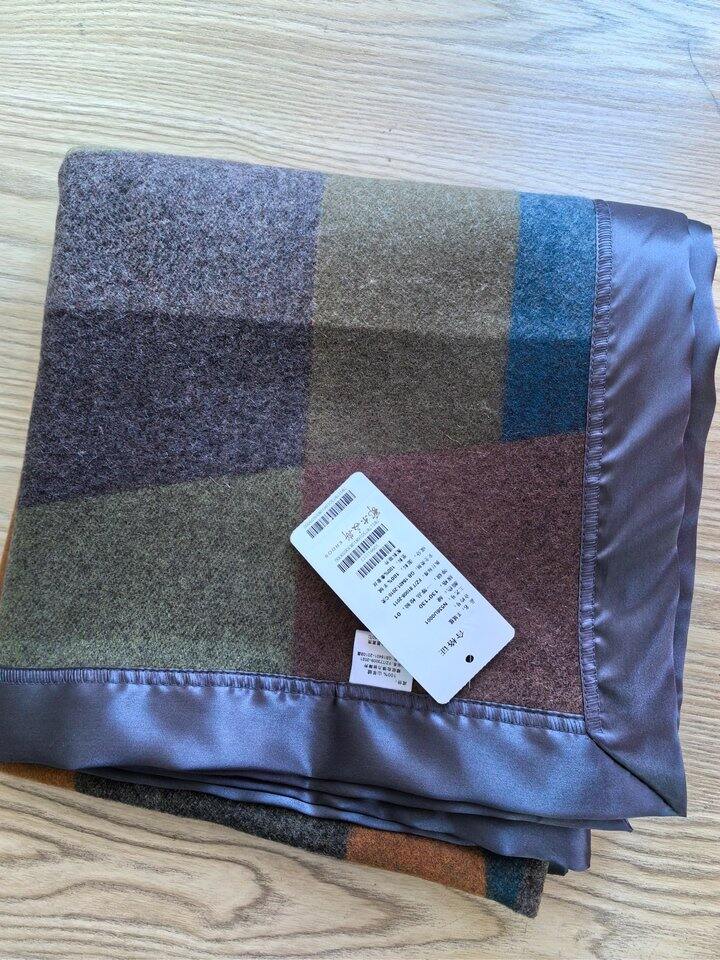 羊绒毯子。提花羊绒披毯,规格:130×130/210×135,100%羊绒。真丝包边!