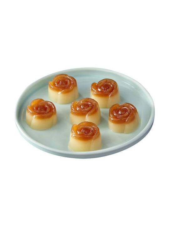 大笑玫瑰奶糕,家里常备的早餐之一,和包子一起上锅蒸,小朋友非常喜欢,经常点名要吃,蒸熟了就是一朵小花,果冻质感,有奶香,里面是奶黄馅,不是很甜。
