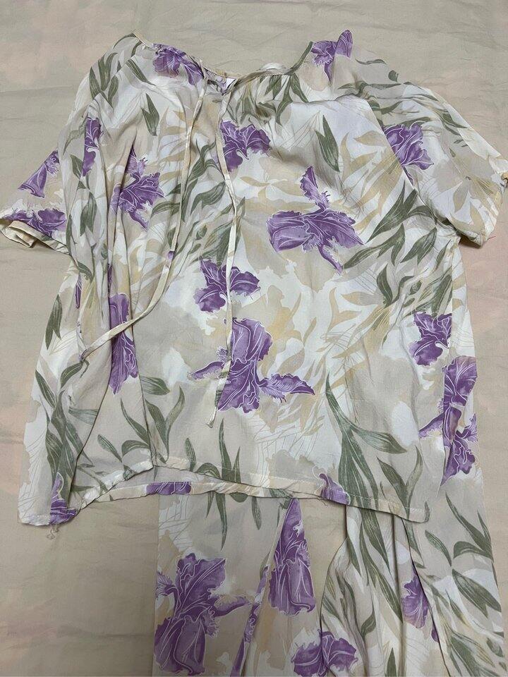 最喜欢紫色花那套,短袖长裤,穿起来最方便。