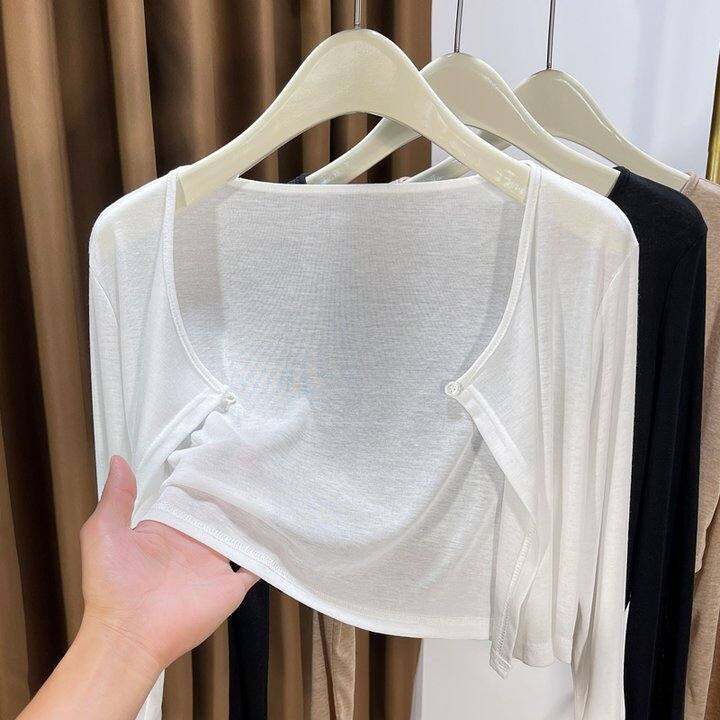 天丝薄款开衫女夏季吊带裙外搭防晒披肩白色冰丝针织短款小外套女
