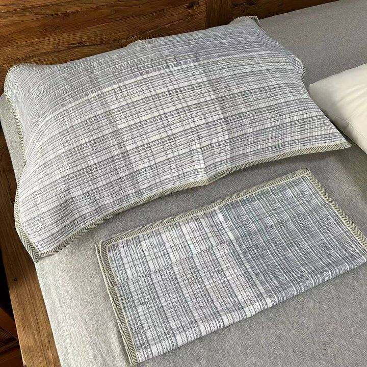队友出汗多 需要备多套枕巾替换 随便搜到这家 买来试试看 到手很惊喜 所见即所得 粗布面料很扎实 洗了也没有缩水 就是容易皱 之前买的棉纱会起球 这个感觉应该不会起球? 搭配家里的四件套也很百搭不违和 格纹不会花里胡哨的 有一种日式棉麻的氛围感 枕了个人感觉也不会粗糙