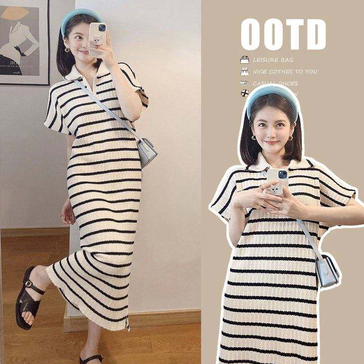孕妇连衣裙夏季大码宽松条纹显瘦针织孕妇裙子夏装女高级感孕妇装