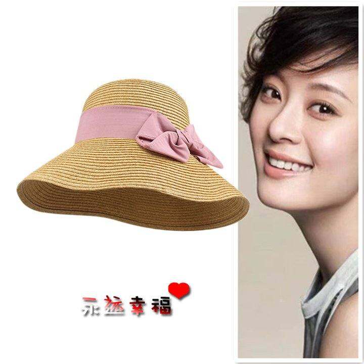 孙俪同款蝴蝶结可折叠草帽子女士夏季沙滩大帽檐UV遮脸防晒遮阳帽