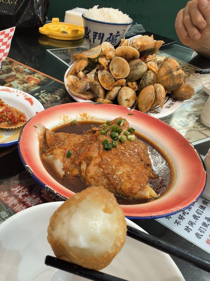 然后请酒店老板找了租电动车的也挺实惠,从入住下午五点租到第三天晚上十一点共80元。骑车兜风去了侨港美食街,吃的越乡小厨。