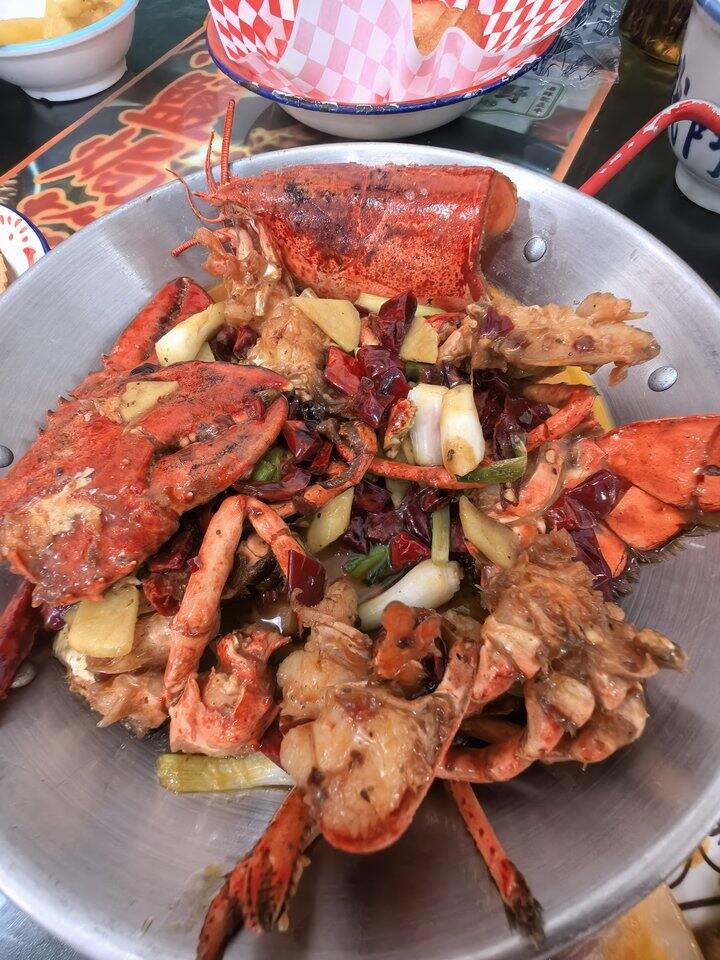 下午两点回酒店点外卖吃完睡觉,五点多继续户外活动,又去美食街吃的食好嘢,点的龙虾套餐,没被坑,味道也可以,份量够。
