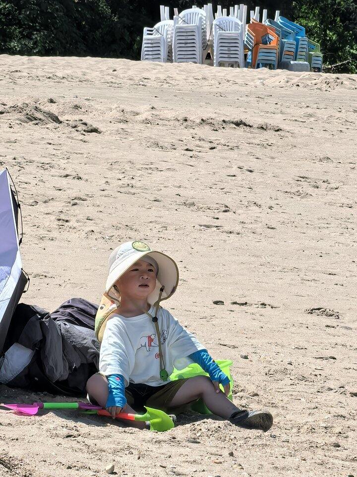 4-又是起晚了的一天,九点多出门去了紫霞湾,想捡点好看贝壳的,结果太晚了,没啥了,最后就变成了娃在挖沙,我们在拍照!