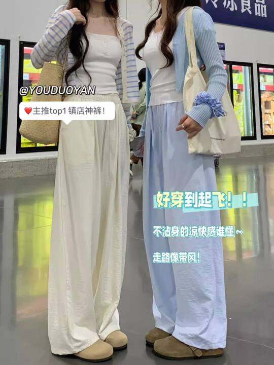 【邓邓】奶芙山本裤 @女薄款高腰肌理垂感小个子白色冰丝阔腿裤