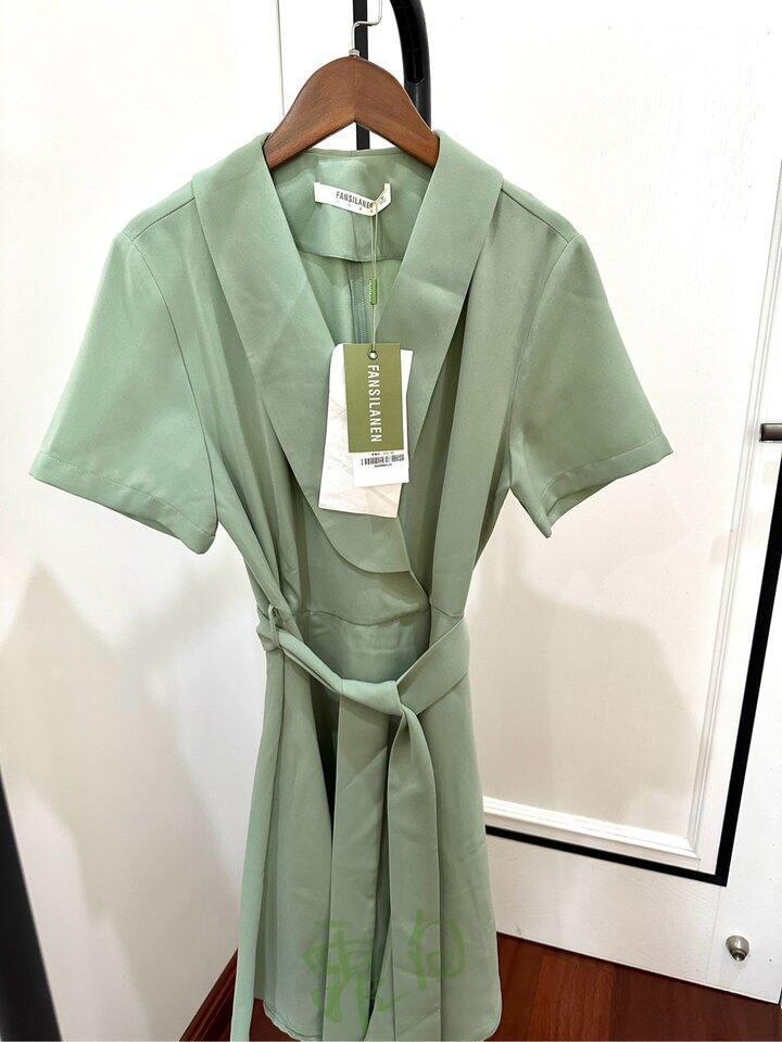 [鹿鼓掌]绿裙腰带跟连衣裙是分开的,可以拆;蓝裙腰带裙子一体的,后腰有弹性,对腰围限制不大。