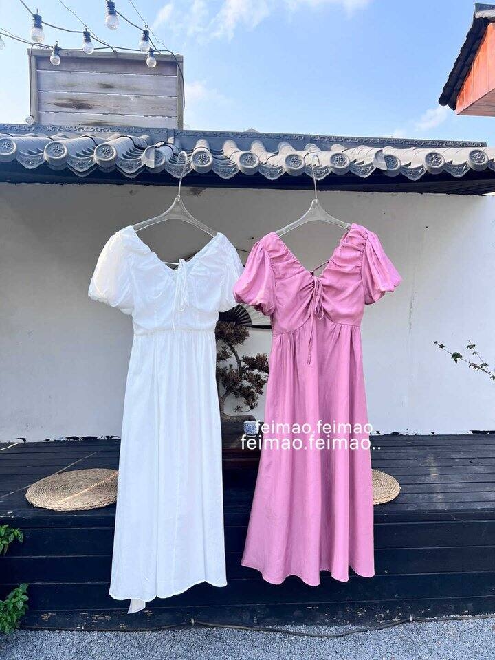 粉色连衣裙,也是M码,但也是偏小一点,适合平时穿S码的姐妹,牌子也是一猫,全新带吊牌,20出!
