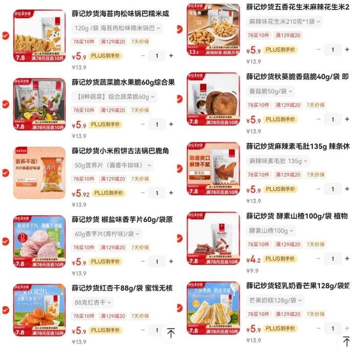 薛记炒货 零食任选专区,任选10件58‼️折5.8/件!很多好吃的可以挑